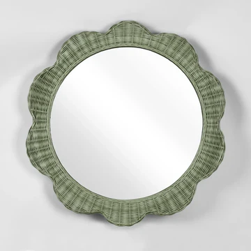 Clarissa Green Rattan Scallop Round Mirror